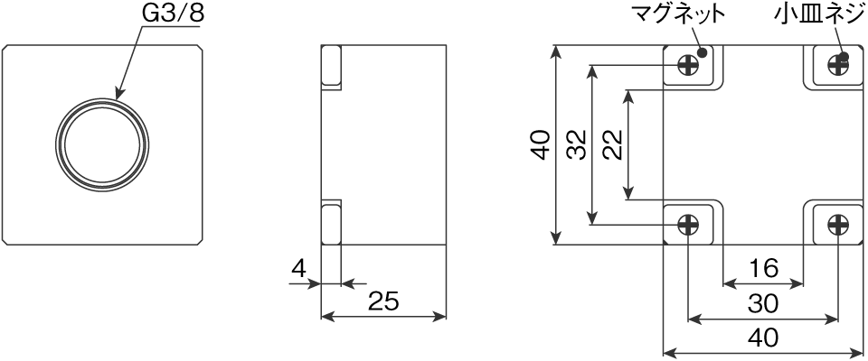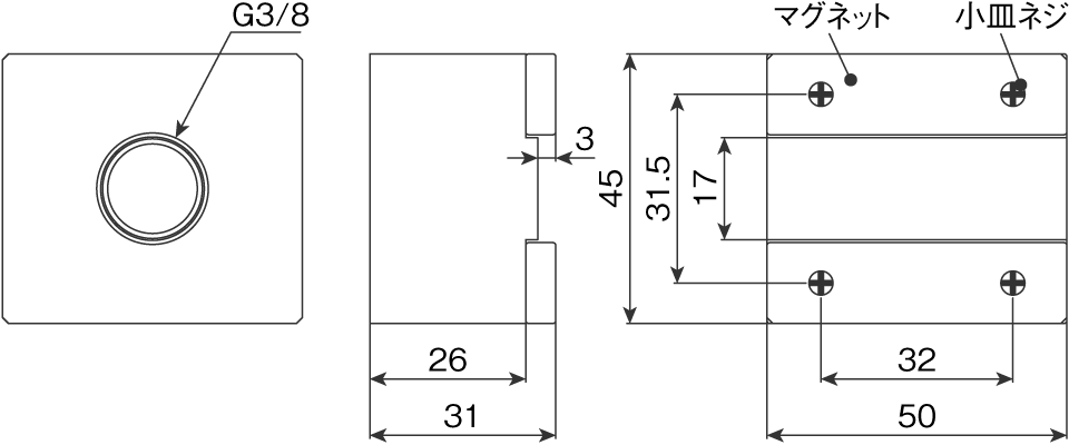 吸着力 | 2kgf(垂直方向に取付時のみ有効)×4個使用 ※ |