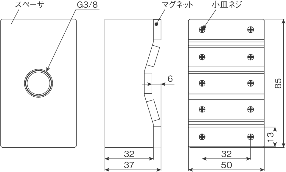 | 吸着力 | 2kgf(垂直方向に取付時のみ有効)×4個使用 ※ |