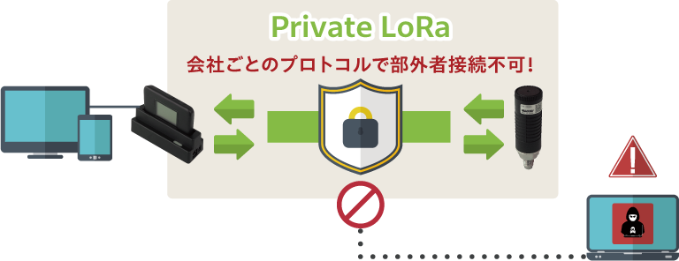 「Private LoRa」はLoRa規格の一部のプロトコル(通信規格)が使用する企業ごとに異なるもので、他者は入ることができません。