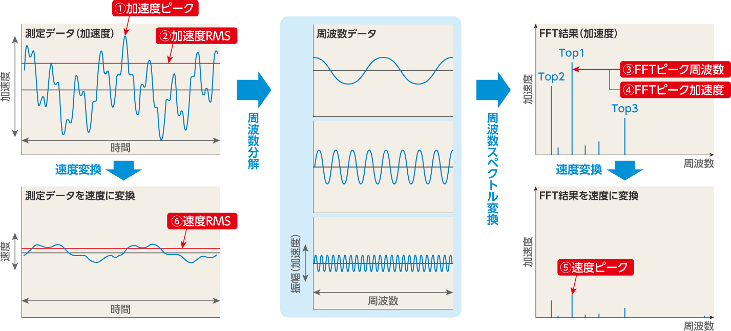| ⑤速度ピーク | FFT結果の加速度を変換した中で最も速度の大きいデータ |